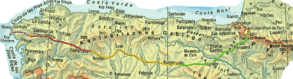 Teil : Ponferrada bis Santiago de Compostela> (rot)